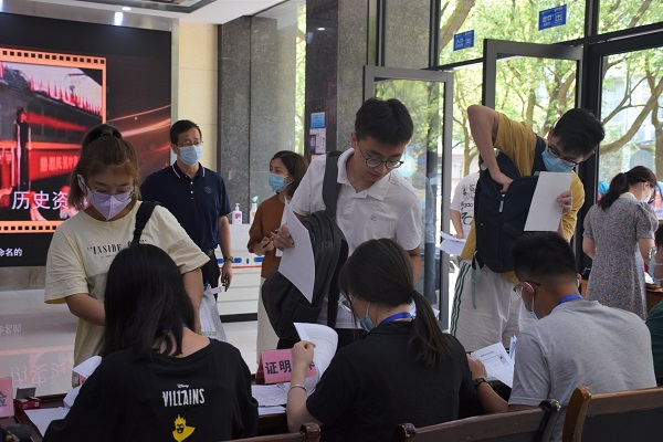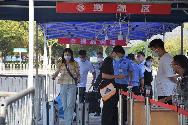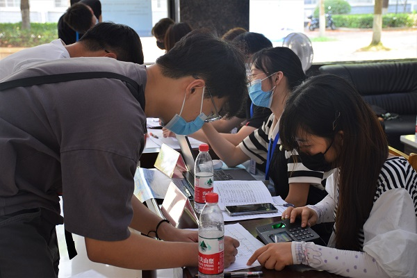 在入校环节,新生经由安保人员以及学校志愿者查验健康码、行程码和核酸检测报告,体温检测正常后方可进入校园到迎新点报到、入住宿舍。根据新冠肺炎疫情防控工作要求,学院精简了研究生报到流程,新生入校后可前往交通楼一楼大厅迎新点完成“一站式”报到,尽量减少人员聚集,力求保障校园安全,规范疫情防控管理。