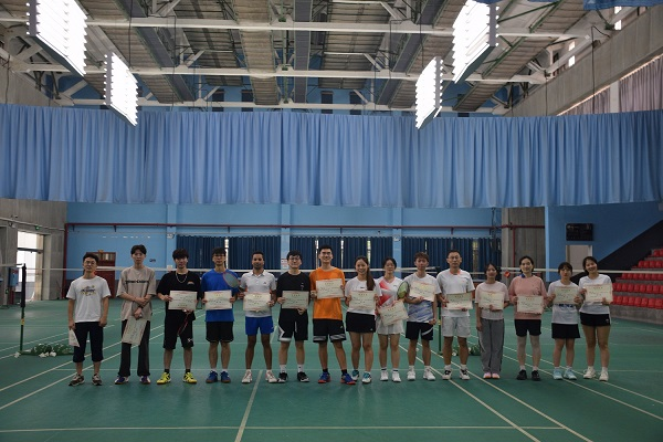 同学们秉持着“友谊第一,比赛第二”的原则尽情释放活力。单打比赛中,选手身手矫健、攻势迅猛;双打比赛中,队员配合默契、战术多变。选手们的状态越打越火热,一个个精彩的扣杀、极限的救球动作纷至沓来,羽毛球在乒羽馆上空划出一道道优美的弧线。选手对攻得分后的振臂欢呼、队员间的击掌庆祝无不令人热血振奋。经过两个多小时的角逐,各项比赛进入尾声。最终,蒋昀轩同学获得男单冠军,龙宣积、段超同学获得男双冠军,林鹏秀、杨燕同学获得女双冠军。
