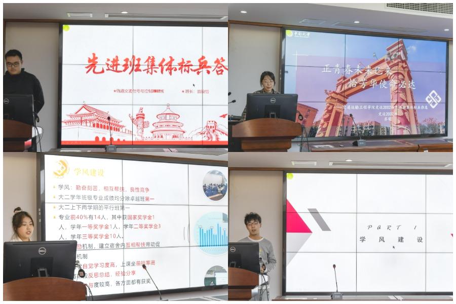 紧接着,进入先进班集体标兵答辩环节。物流1901班、交运2004班、交控2001班、物流2001班、交控2002班、交运2002班、交通运输类2106班、交运T2001班班长分别代表各自班级依次上台展示。他们从班级工作制度、管理培训宣传、学风班风建设等各方面的介绍中彰显了各自班级的特色,突出了其与众不同的优势所在。在场评委立足各班特色与优势提问,并对班级未来发展给出了建设性意见。