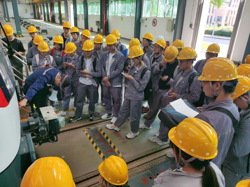 在长沙动车运用所实习过程中,同学们学习了高速动车组的检修工艺流程;在长沙机务段实习过程中,同学们对机务段的职能以及电力机车的检修有了深入的了解;在长沙西动车所实习过程中,同学们学习到了智能化仓库管理和智能化动车组检修技术;在长沙尚双塘车辆段实习过程中,同学们学习到了长沙地铁的运营模式及地铁车辆的相关知识;在铁建重工集团实习过程中,“大国重器”盾构机及其他轨道工程装备的参观开阔了同学们的视野;在株洲联城集团及株洲道岔公司的实习过程中,同学们了解到机车车辆设备国产化研发与生产的流程;在株洲电力机车有限公司实习过程中,自动化、智能化机车生产线以及株洲电力机车公司的发展历程带给同学们极大震撼,同时使大家了解到电力机车的前沿技术。