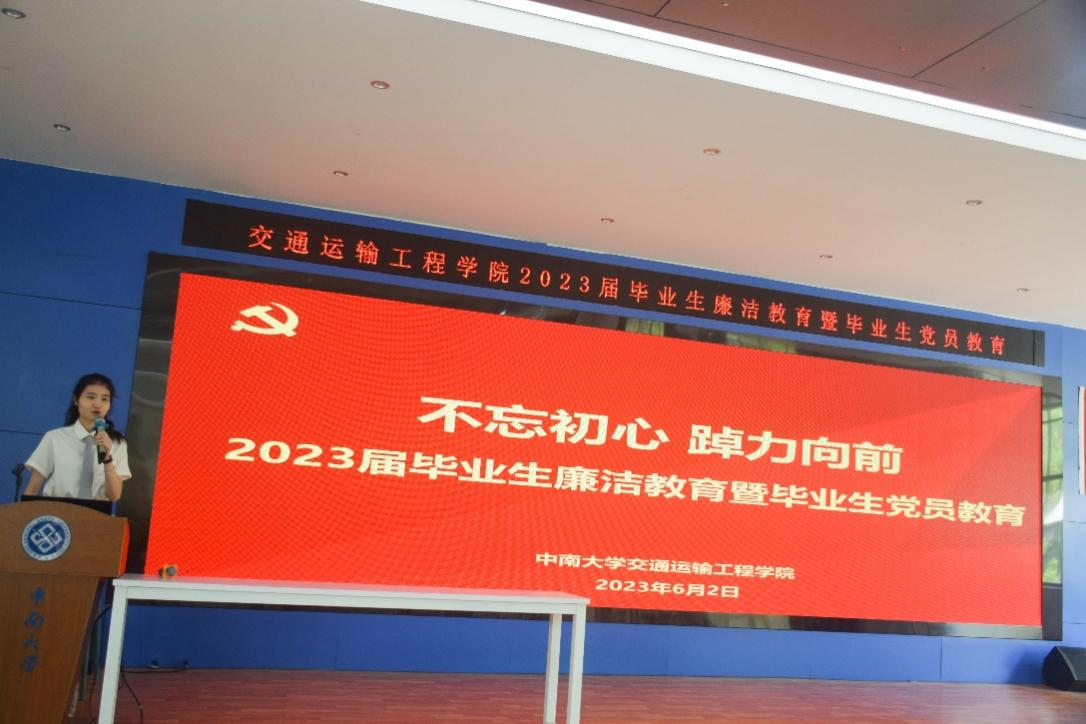 毕业生党员教育和毕业生廉洁教育,是给毕业生党员上好离校前思想政治教育的“最后一课”,也是给全体毕业生扣好步入社会的第一颗扣子。祝愿学院2023届全体毕业生以更加笃定的心志、坚忍的意志、蓬勃的斗志在新岗位不断建功立业,在建设社会主义现代化强国的征程中踔厉前行!