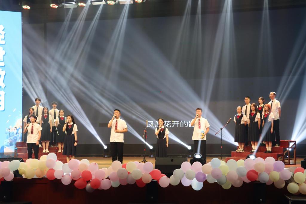 《我们的时代》唱出了飞扬青春与少年意气,这一乐队原创歌曲的演绎更是为他们本科生涯留下难以磨灭的印迹。舞蹈《碇步桥》再现了烟雨古韵里的曼妙舞姿,使观众们仿佛置身于安徽水乡,随舞者袅袅而行。2019级辅导员郑繁简老师与团干部们共同朗诵《毕业歌》,慷慨激昂,振奋人心,勉励广大学子奋发向上,勇担时代使命。晚会在歌曲《凤凰花开的路口》中落下帷幕,歌曲末,学院师生一同上台合唱,气氛浓厚,赢得了热烈地掌声。