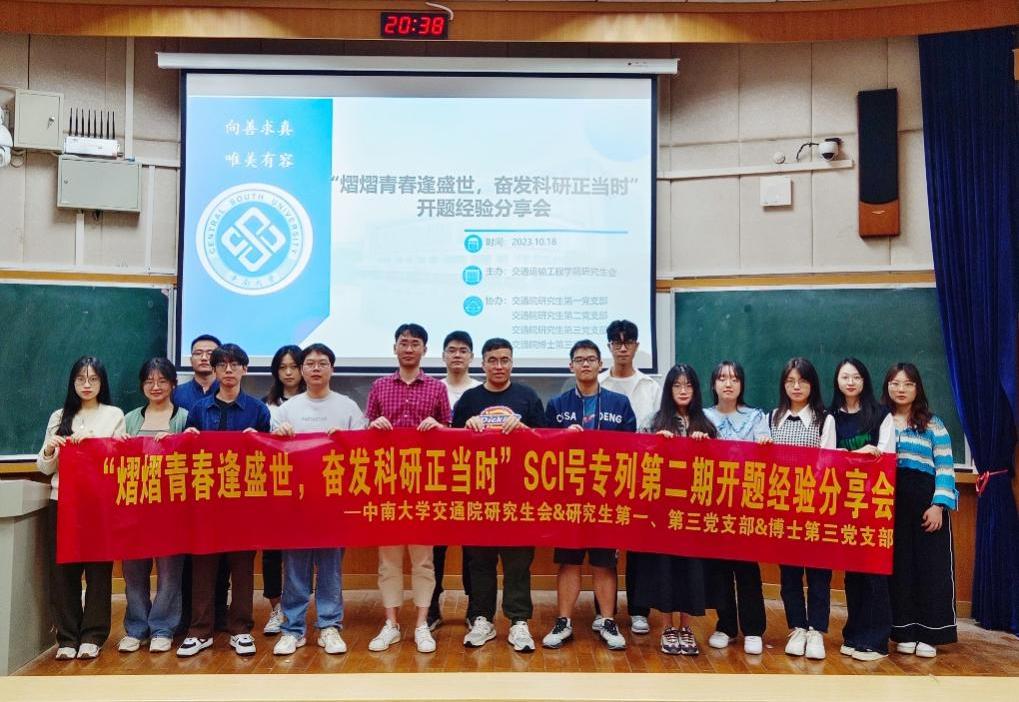 研究生会和党支部的组织力和凝聚力。分享会为同学们带来了宝贵的学术指导和思想启迪,加深了同学们对科研道路的认识。此次分享会激发了同学的热情和决心,他们将不断提升科研能力,为中国交通事业的繁荣做出贡献。展望未来,我们充分相信,交院学子们将在科研道路上不断探索,勇担科技强国使命,为中国的交通事业发展贡献自己的智慧和力量。