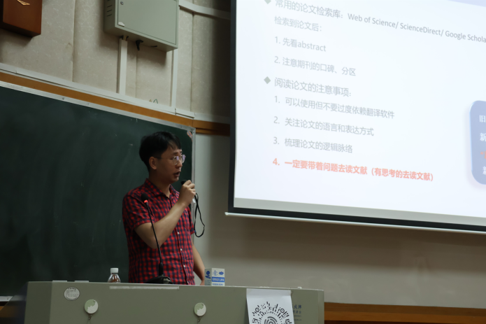 最后,主讲人王俊人分享关于如何进行有效文献阅读以及撰写第一篇SCI论文的经验。他建议同学们在开始阅读之前,先明确自己的研究目标和问题,筛选合适的文献进行深入阅读,此外,还要学会快速浏览文献摘要和关键词,合理利用文献引用和参考文献等。关于写作第一篇SCI论文,王俊人提供了一些实用的建议。他建议同学们提前了解目标期刊的要求和写作规范,在何组织论文结构,清晰表达研究方法和结果,处理实验数据和图表等方面下功夫。
