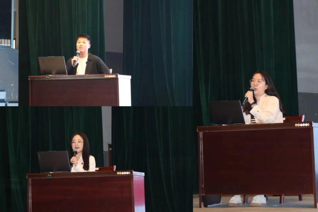 2023级新生入学适应教育课堂于南校区大礼堂举行,学院团委书记张健,2020级辅导员石晓琪,2021级辅导员王羽珊,2022级辅导员丁德孝,2023级辅导员蔡明旭、王尚君到场授课。
