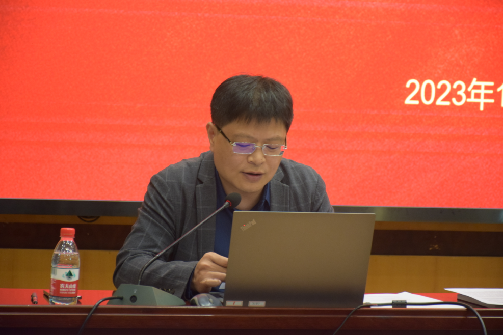 党委书记袁世平、院长黄合来、党委副书记李苑等学院全体教职工以及学生代表参加学习。会议由黄合来院长主讲,李苑副书记主持。