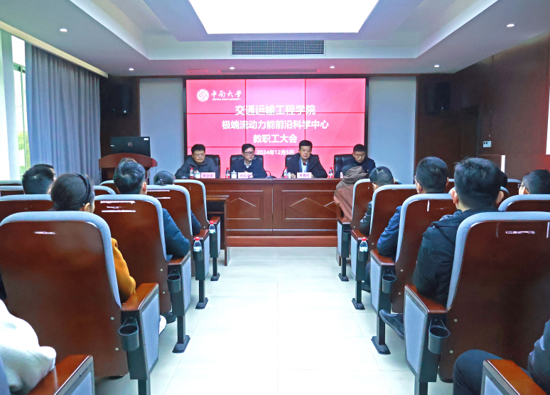 极端流动力能前沿科学中心教职工大会在交通楼425召开。校党委副书记黄健陵,校组织部部长田庆华、副部长穆克朗,学院党委书记袁世平出席,学院领导班子成员、中层干部以及中心教职工参加会议。学院党委副书记、院长黄合来主持大会。