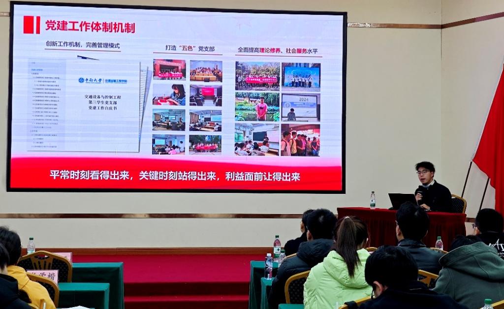 现场教学结束后,培训班先后开展了由袁世平书记讲授的《中国共产党不合格党员组织处置办法》《关于进一步加强和改进流动党员管理工作的意见》解读、由交通设备与控制工程第三党支部官群雄讲授的支部建设经验分享等专题教学。