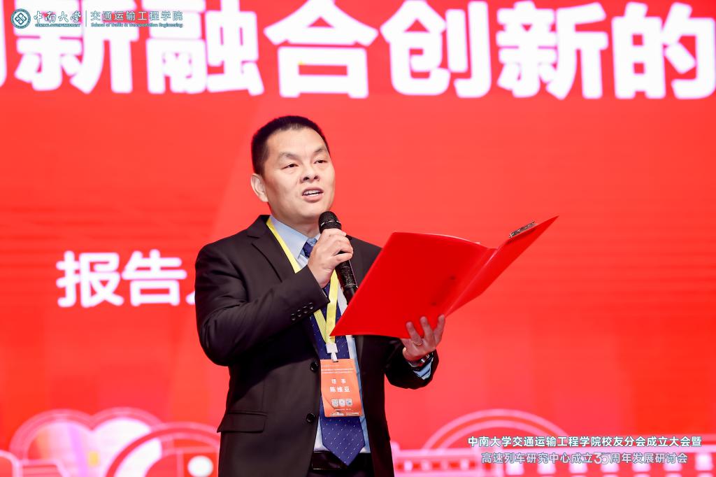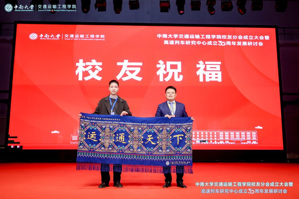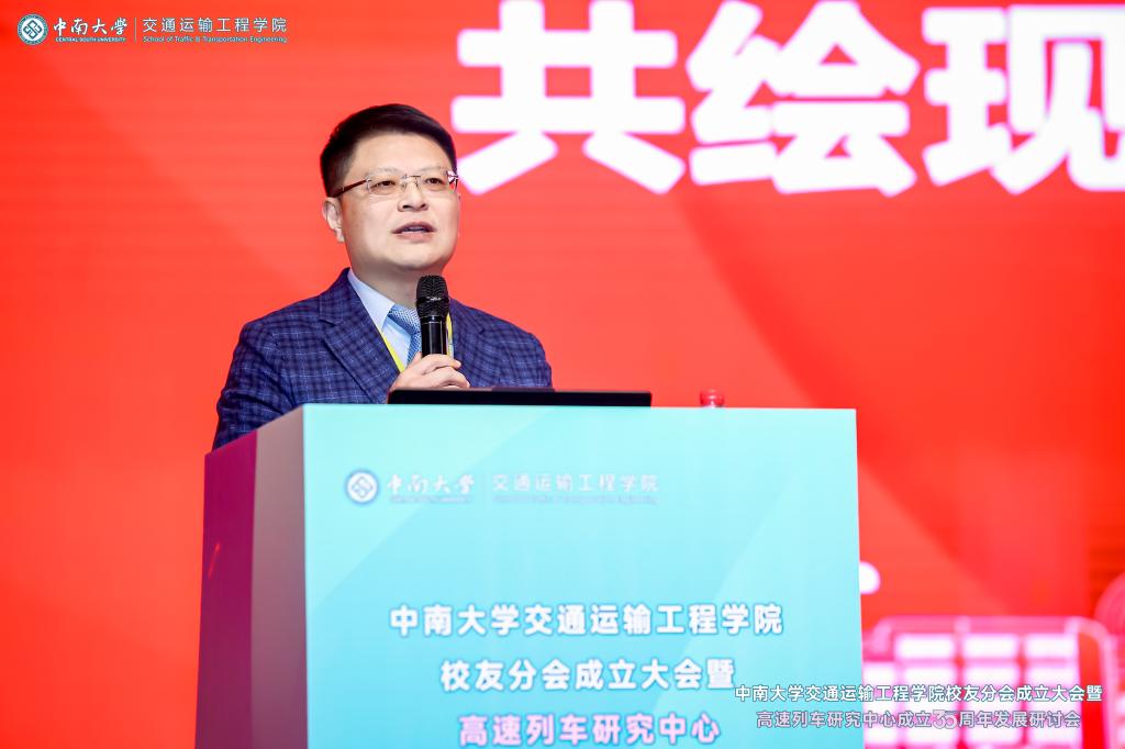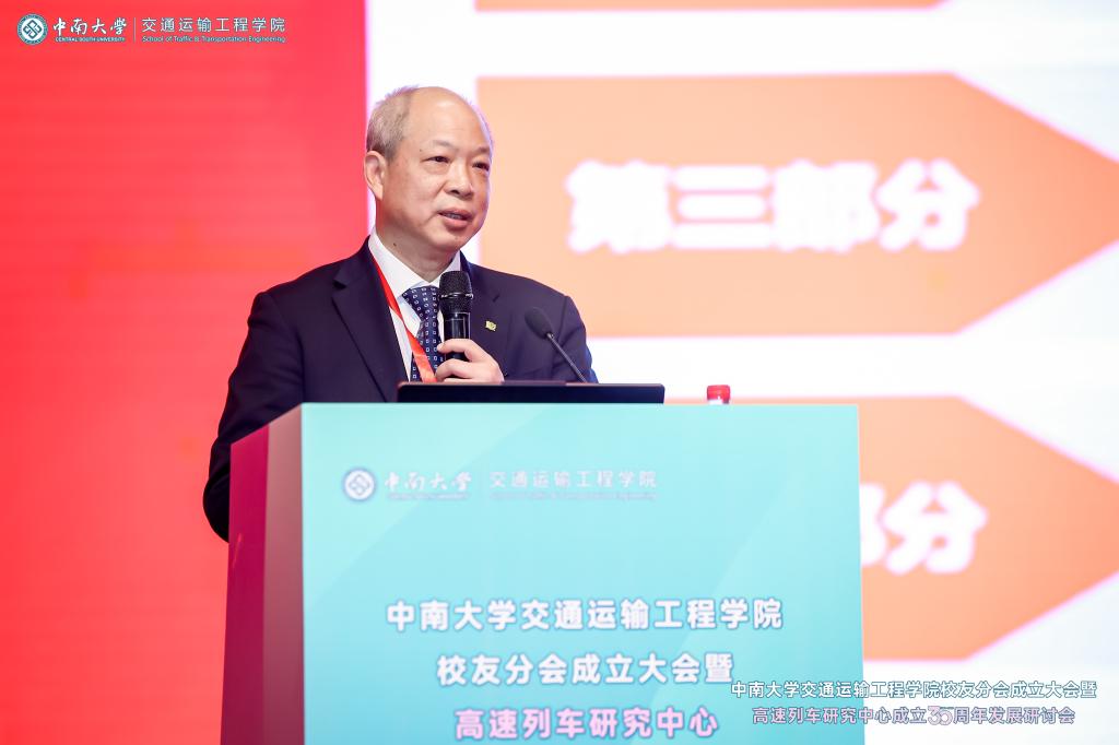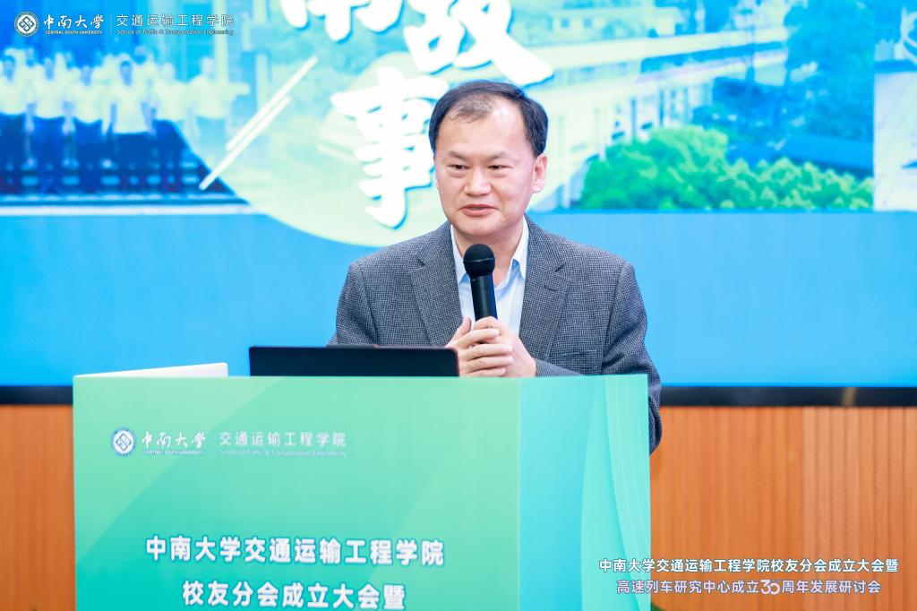 党委副书记黄健陵代表学校致辞。他在讲话中指出,校友分会的成立将进一步团结凝聚广大交通校友,为全球的中南交通人搭建联络情感、交流合作和爱校荣校的平台,共同助力学院和学科的高质量发展。他希望校友分会不仅要做好服务校友的“贴心人”,联系校友的“连心桥”,更要充分挖掘和发挥资源优势,组织广大校友探索深度参与产教融合的新模式,助力校友与母校双向赋能,共创辉煌。