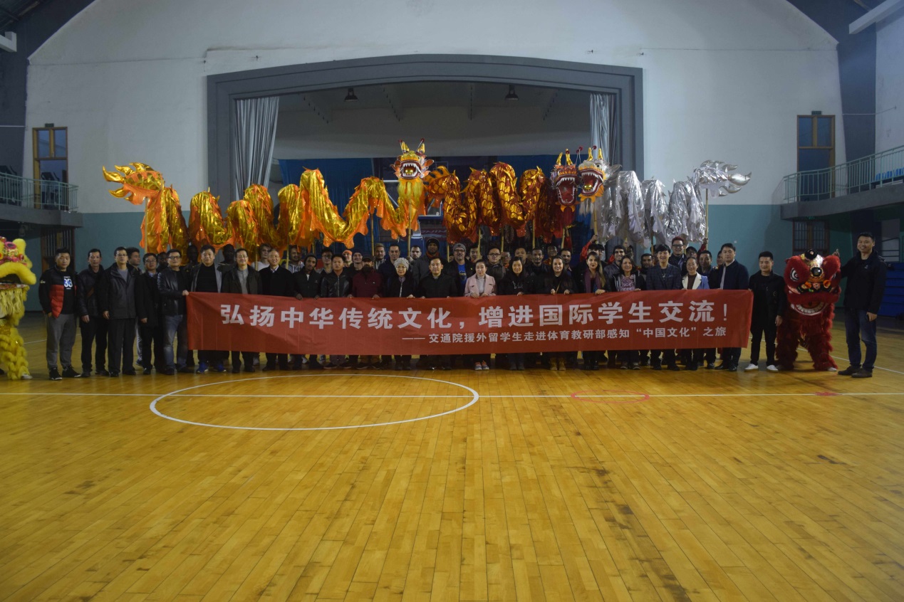 3月24日晚8点,交通院组织商务部援外项目全体留学生前往校本部体育馆观看由体育教研部举办的舞龙舞狮节目。学校体育教研部主任廖耘、副主任李忠,国际交流与合作处副处长黄合来,交通院党委书记贺志军、党委副书记宋晓东、副院长彭勇到场。活动现场气氛十分热烈,留学生们在舞龙舞狮的文化表演中深刻地感知到了中国传统文化的魅力。