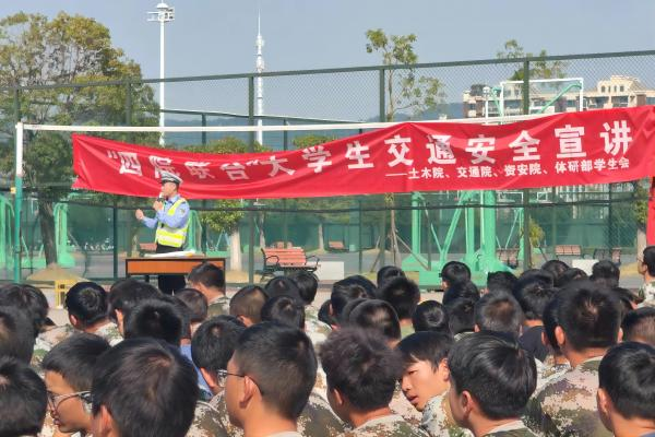 10月24日上午10:00,交通院、土木院、资安院以及体育教研部联合岳麓四中队开展了“四院联合”大学生交通安全宣讲活动,对23级新生进行了交通安全法规宣讲。本次活动由岳麓交警大队四中队陈警官主持。活动伊始,陈警官就非机动车购买的注意事项进行讲解。他告诫同学们,购买电动车时要认准带有国家质检证书的新国标电动车,黄牌电动车属于超标电动车,一定不能购买。随后,陈警官向新生介绍了一些交通事故发生的原因,如电动车违...