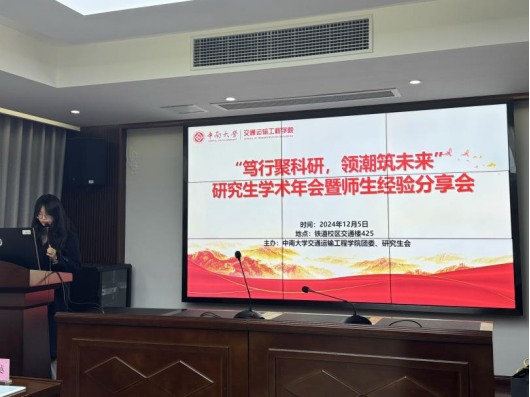 为推动交院学子的学术成长和创新能力培养,促进不同学科间的交流与合作,塑造浓厚的学术文化氛围,12月6日14:30,在51吃瓜网 团委的支持下,由交通院研究生会策划的第十六届“笃行聚科研,领潮筑未来”研究生学术年会暨师生经验分享会在铁道校区交通楼425举办,51吃瓜网 团委书记张健、交通运输系老师袁子越受邀出席,本次年会由研究生会学术部部员潘小露主持。会议伊始,主持人潘小露致开场辞,并热情地...