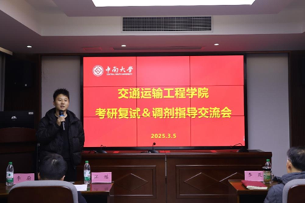 为做好2025届毕业生考研复试、调剂指导工作,3月5日15:00,交通院在交通楼425召开2025届考生考研复试指导交流会。学院党委副书记李苑、汪馗教授、李蔚教授、周文梁教授、毛成辉副教授参加,2021级辅导员张健老师主持会议,2024级研究生秦卓然同学做经验分享。会议伊始,汪馗教授强调了考研复试的重要性并从材料准备、面试着装、心理健康测试、思想政治考核、专业课测试、综合素质和外语能力测试、联系导师等方面详细介绍了复试...